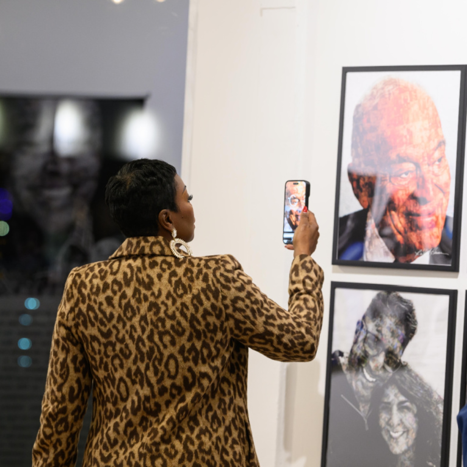 Other works included “Melted Clock,” a Salvador Dalí inspired table, and a 7-foot door featuring dual portraits, “Italia” (Kobe Bryant) and “Son of Roxie” (Lenny Kravitz). The evening also featured a surprise unveiling for Aisha Hinds, commissioned by Silky Valente, before a live audience of 300.
