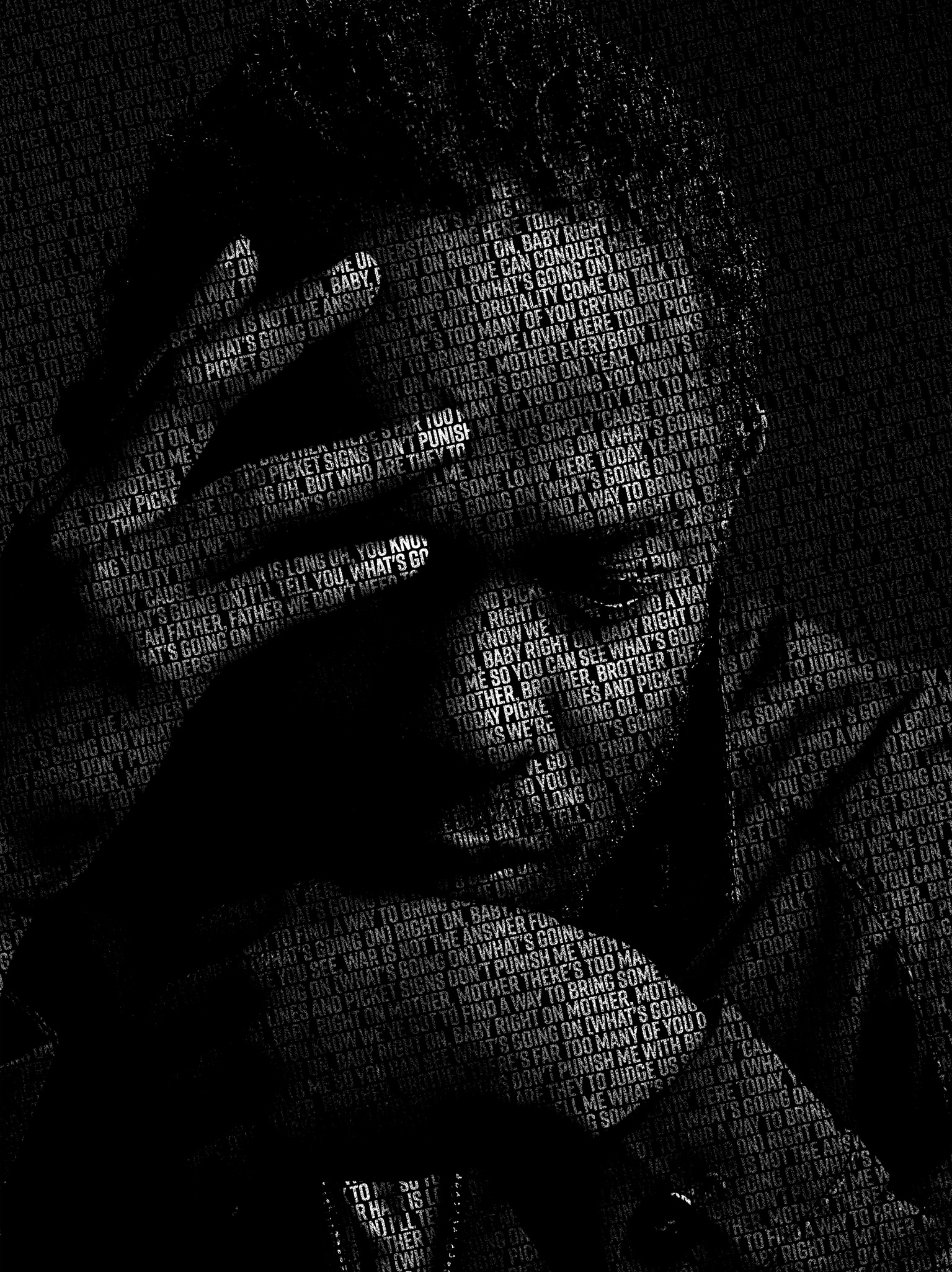This portrait depicts Kendrick Lamar Duckworth—known early in his career as K. Dot—through the very words that helped define him. Drawn from his award-winning track Not Like Us, the text becomes both texture and identity, reflecting how Kendrick’s lyricism shapes his artistic presence. Once “K. Dot,” now globally recognized as Kendrick Lamar, he remains one of the most influential voices of his generation.