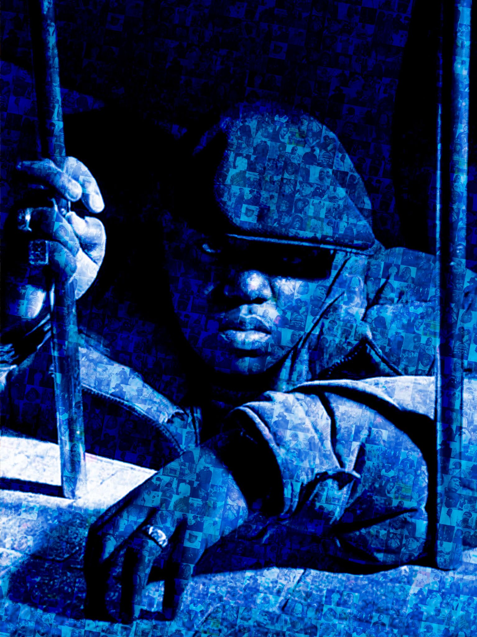 Inspired by the iconic chant of Christopher Wallace, better known as Biggie Smalls, it was made famous in the ’90s. Where Brooklyn At? marks one of Robert’s earliest explorations into monochromatic portraiture. Though Biggie’s life was tragically cut short just as his star was ascending, his powerful call and response anthem, still echoes through hip-hop culture, forever linked to his legacy and the borough he proudly represented.